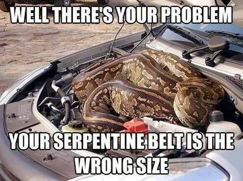 Well there’s your problem… Your serpentine belt is the wrong size September 5, 2013September 5, 2013 by admin